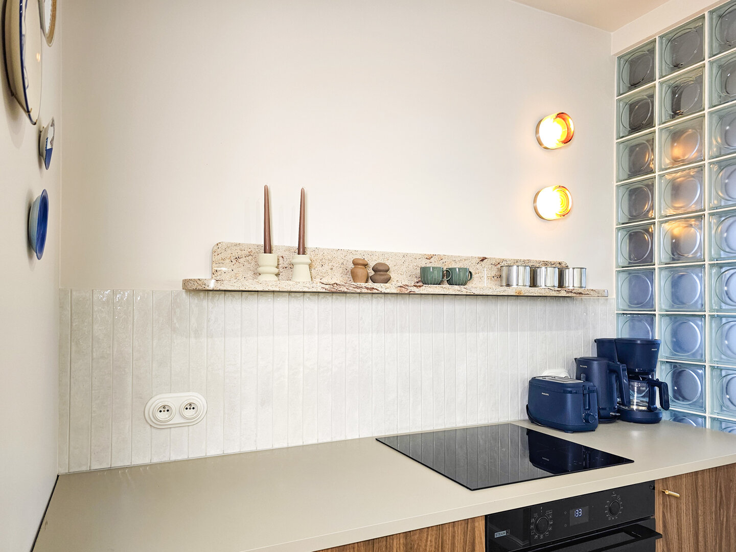 Die 1-Zimmer-Ferienwohnung mit einer Fläche von 24m2 befindet sich im 3. Stock eines mit einem Fahrstuhl ausgestatteten Gebäudes. Sie ist für den Aufenthalt von einer bis zu drei Personen vorbereitet.