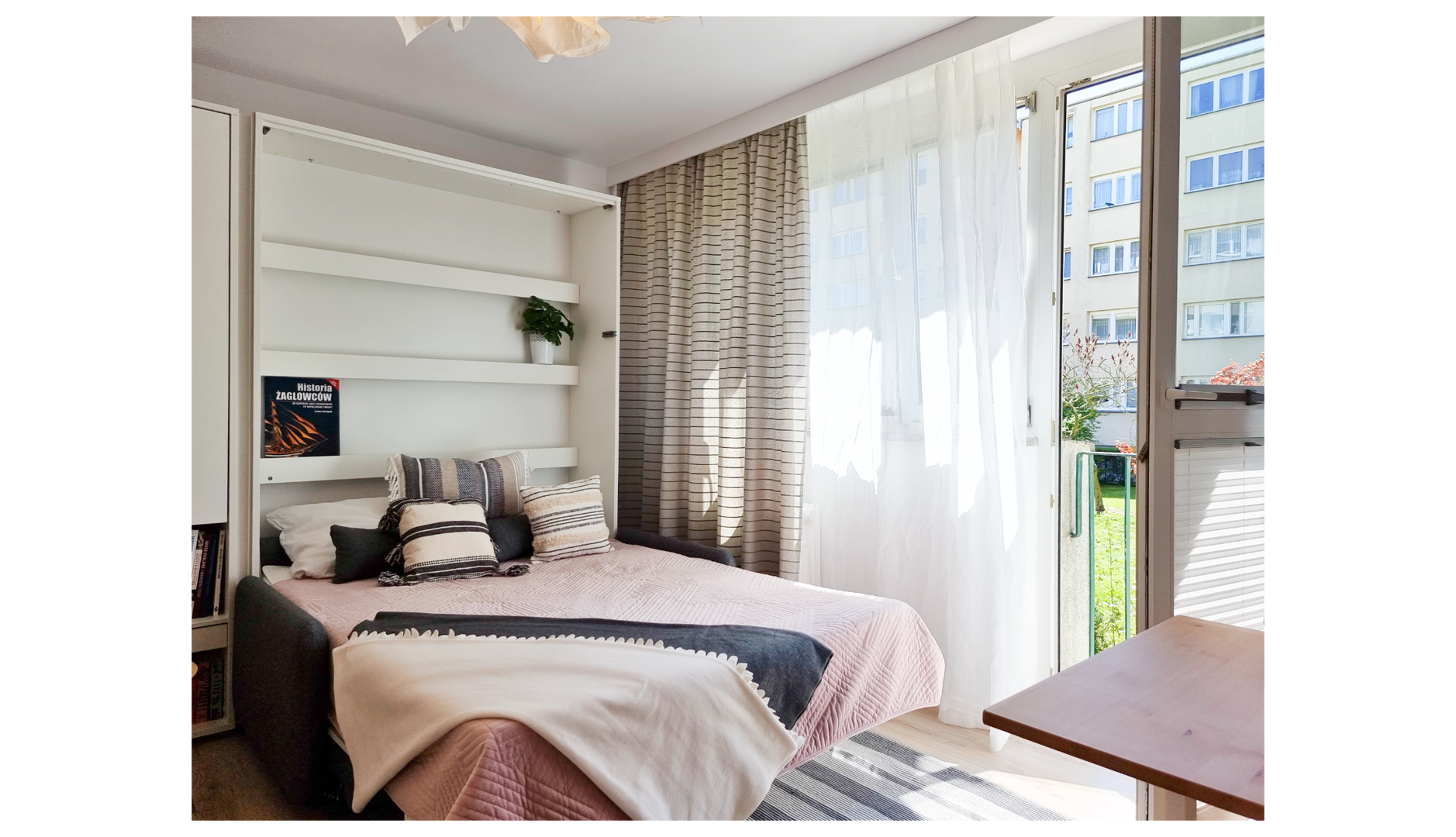 A comfortable apartment with a bedroom, living room, and a large sunny balcony, located on the 1st floor of a building within the Greeneri Park complex in Świnoujście. Well-equipped, spacious, and includes a parking space in the underground garage. The gr