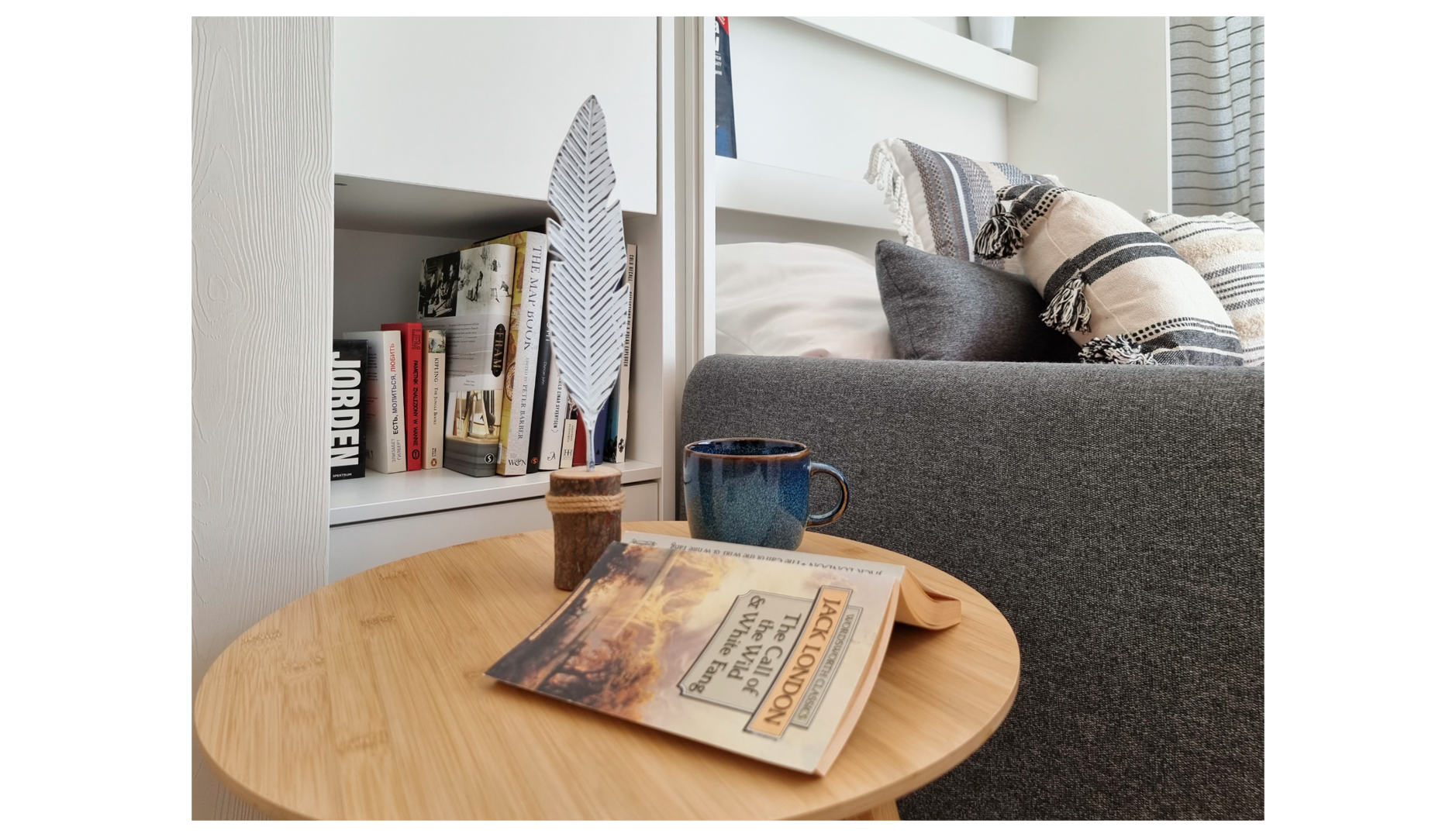 Stylish and spacious beachfront flat with bedroom, living room and balcony.
