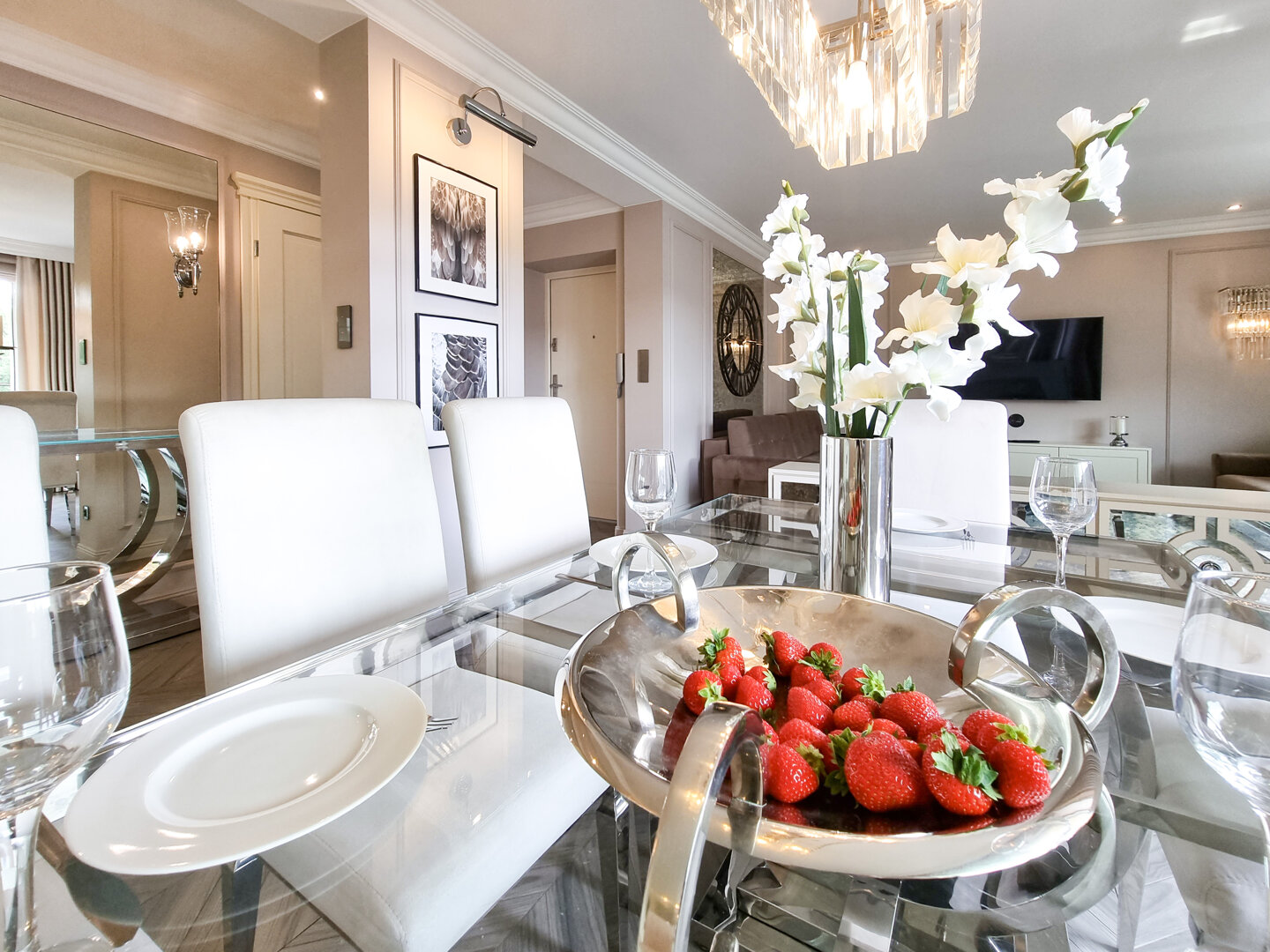Część wypoczynkowa z rozkładaną sofą, 2 fotelami, kącikiem telewizyjnym (telewizja od dostawcy Vectra + Smart TV).