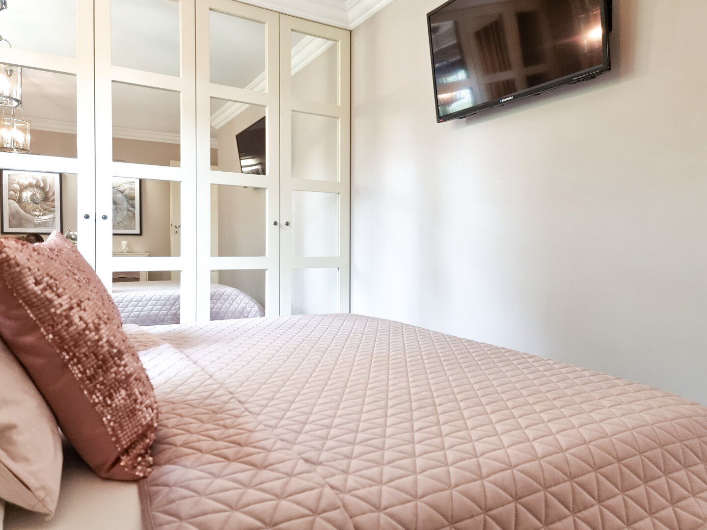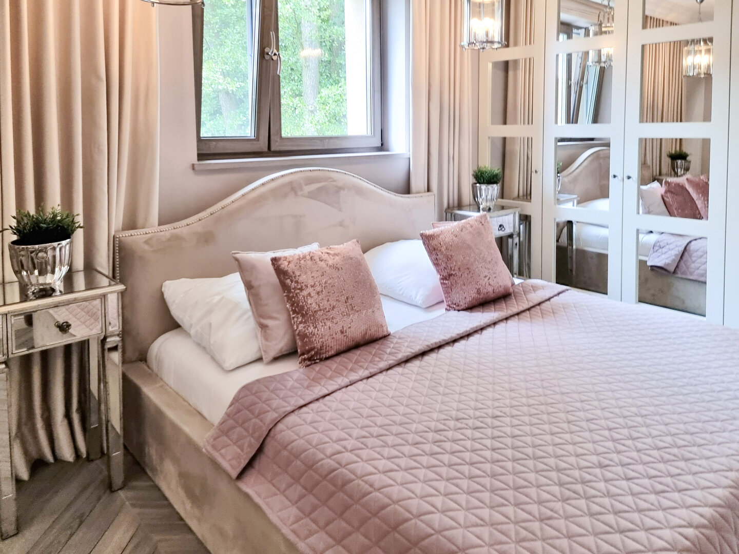 Sypialnia z łóżkiem podwójnym 160x200 cm i szafą.